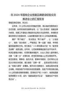 在202X年国有企业党建品牌建设经验交流推进会上的汇报发言.docx