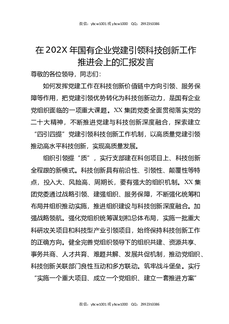 在202X年国有企业党建引领科技创新工作推进会上的汇报发言.docx