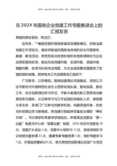 在202X年国有企业党建工作专题推进会上的汇报发言.doc