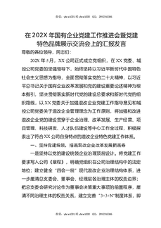 在202X年国有企业党建工作推进会暨党建特色品牌展示交流会上的汇报发言.docx