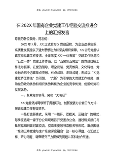 在202X年国有企业党建工作经验交流推进会上的汇报发言.docx