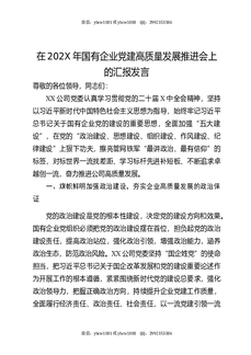 在202X年国有企业党建高质量发展推进会上的汇报发言.docx