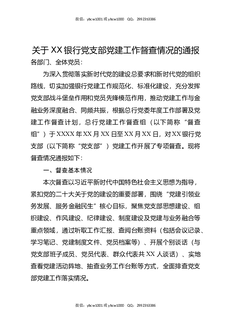 关于XX银行党支部党建工作督查情况的通报1.docx