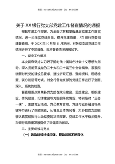 关于XX银行党支部党建工作督查情况的通报.docx