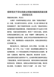 烟草局关于深化党建业务融合赋能高质量发展的经验交流.docx