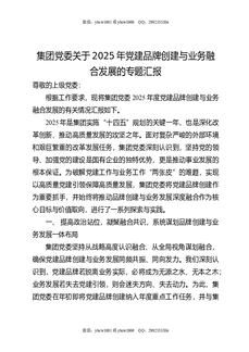 集团党委关于2025年党建品牌创建与业务融合发展的专题汇报.docx