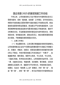国企公司党委2025年前三季度抓基层党建工作总结.docx