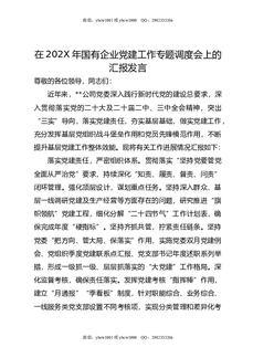 在202X年国有企业党建工作专题调度会上的汇报发言.doc