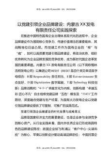 以党建引领企业品牌建设:内蒙古XX发电有限责任公司实践探索.docx