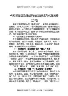 党建引领基层治理创新的实践探索与优化策略(公司).docx