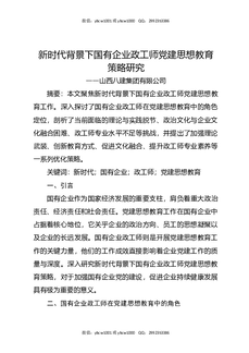 新时代背景下国有企业政工师党建思想教育策略研究——山西八建集团有限公司.docx