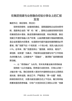 在集团党建与业务融合经验分享会上的汇报发言.docx