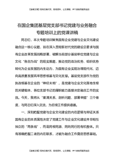 在国企集团基层党支部书记党建与业务融合专题培训上的党课讲稿.docx