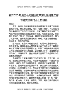 在2025年集团公司国企改革深化暨党建工作专题交流研讨会上的讲话.docx