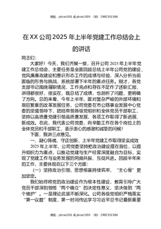 在XX公司2025年上半年党建工作总结会上的讲话.docx