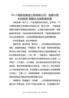 XX八局新型建造工程有限公司:党建引领科技创新,赋能企业高质量发展.docx