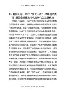 XX有限公司:牢记“国之大者”,扛牢使命责任,把国企党建政治优势转化为发展优势.docx