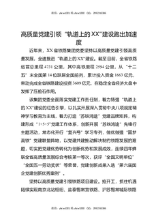 高质量党建引领“轨道上的XX”建设跑出加速度.docx