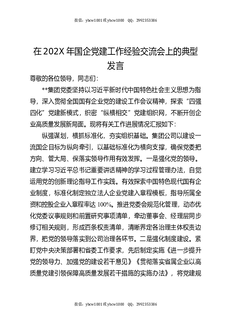在202X年国企党建工作经验交流会上的典型发言.docx