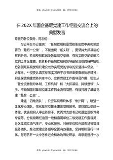 在202X年国企基层党建工作经验交流会上的典型发言.docx