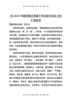 在202X年国资国企党建工作经验交流会上的汇报发言.docx