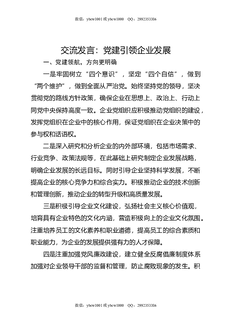 交流发言:党建引领企业发展.docx