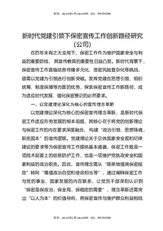 新时代党建引领下保密宣传工作创新路径研究(公司).docx