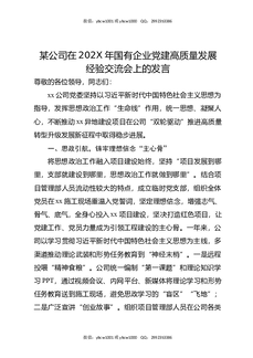 某公司在202X年国有企业党建高质量发展经验交流会上的发言.docx