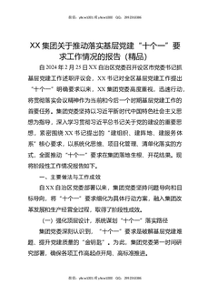 XX集团关于推动落实基层党建“十个一”要求工作情况的报告(精品).docx