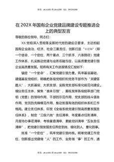 在202X年国企党建品牌建设经验交流推进会上的汇报发言(2281字).docx