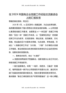 在202X年国企党建工作经验交流推进会上的汇报发言(3850字).docx