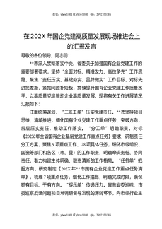 在202X年国企党建高质量发展现场推进会上的汇报发言.docx