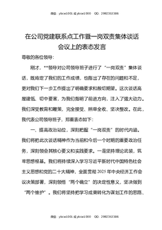 在公司党建联系点工作暨一岗双责集体谈话会议上的表态发言.docx