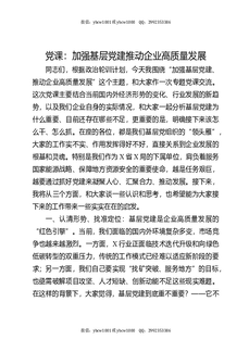 党课:加强基层党建推动企业高质量发展.docx