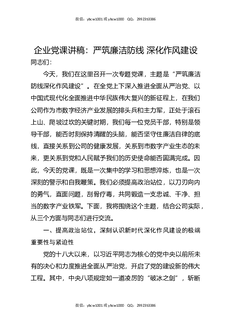 企业党课讲稿:严筑廉洁防线,深化作风建设.docx