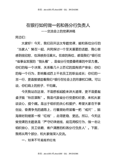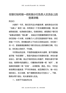 在银行如何做一名和各分行负责人——交流会上的党课讲稿.docx