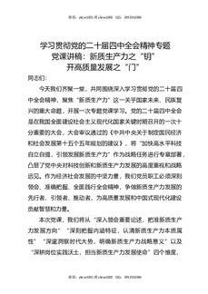 学习贯彻党的二十届四中全会精神专题党课讲稿:新质生产力之“钥”,开高质量发展之“门”.docx