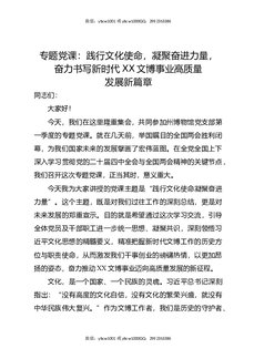 专题党课:践行文化使命,凝聚奋进力量,奋力书写新时代XX文博事业高质量发展新篇章.docx