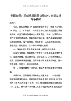 专题党课:深刻把握世界格局变化,自觉发扬斗争精神.docx