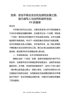 党课:坚定不移走生态优先绿色发展之路,奋力谱写人与自然和谐共生的XX新篇章.docx
