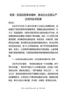 党课:发扬自我革命精神,推动企业全面从严治党向纵深发展.docx