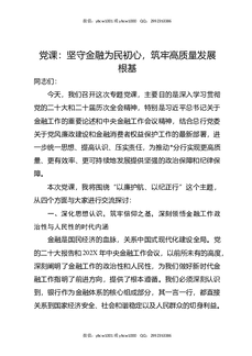 党课:坚守金融为民初心,筑牢高质量发展根基.docx