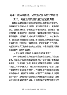 党课:坚持带团建,全面强化国有企业共青团工作,为企业高质量发展贡献团青力量.doc