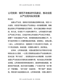 公司党课:锲而不舍推进作风建设,推动全面从严治党向纵深发展.docx