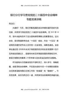 银行分行学习贯彻党的二十届四中全会精神专题党课讲稿.docx