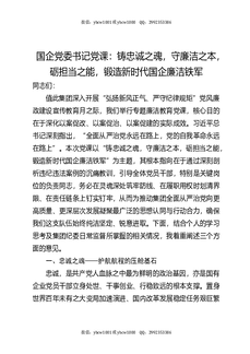 公司廉政党课:铸忠诚之魂,守廉洁之本,砺担当之能,锻造新时代国企廉洁铁军.docx