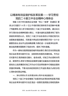 以精准有效监督护航改革发展——学习贯彻党的二十届三中全会精神心得体会(银行).docx