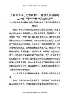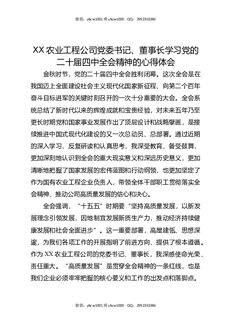 XX农业工程公司党委书记、董事长学习党的二十届四中全会精神的心得体会.docx