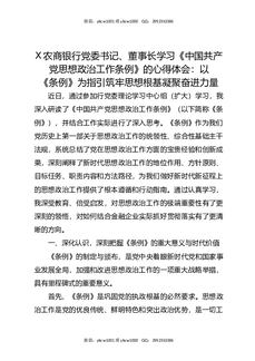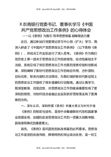 X农商银行党委书记,董事长学习《中国共产党思想政治工作条例》的心得体会.docx