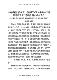 农商银行党委书记,董事长学习《中国共产党思想政治工作条例》的心得体会1.docx